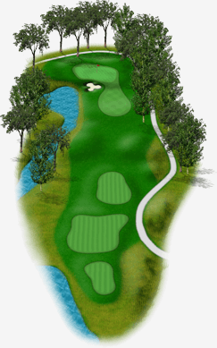 It’s the hole you see as you enter the course off Oxbow Drive. A big slice and you’ll end up in the wilds, but five devilish bunkers on the right have been designed to catch wayward balls before they’re lost forever! Stay to the left side of the fairway and it’s a much easier second shot to a green that’s protected directly in front by a single bunker.