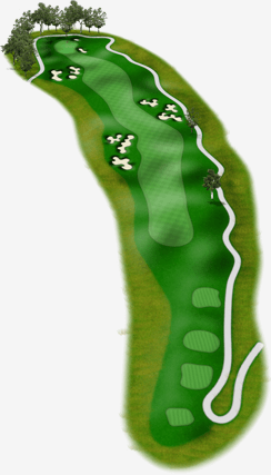 A good honest par-4 with the wind at your back. This 348 to 430-yard slight dogleg-left welcomes a driver off the tee. The ideal shot will be positioned on the right side of the fairway, but to do that you must flirt with the three treacherous fairway bunkers that come into play off the tee.
